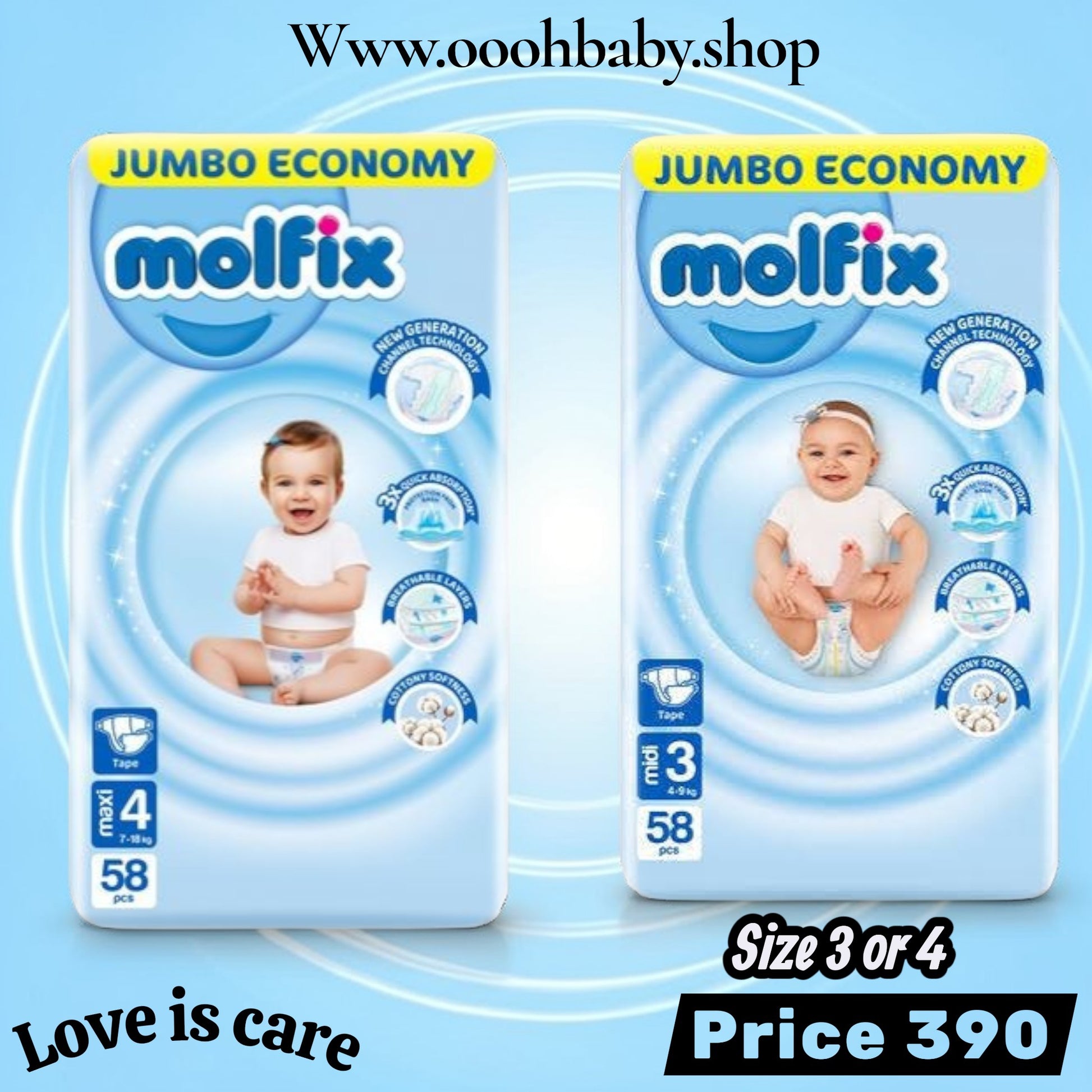 موليفكس حفاضات مقاس ٣ او ٤ عدد ٥٨ قطعه